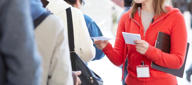 イベント当日の受付、会場誘導、サンプリングなどの会場運営スタッフや、事前に来場者管理を行う事務局スタッフの手配などご相談可能です。貴社の印象を左右する運営業務に関して、我々はホスピタリティの気持ちを込めて運営を行います。